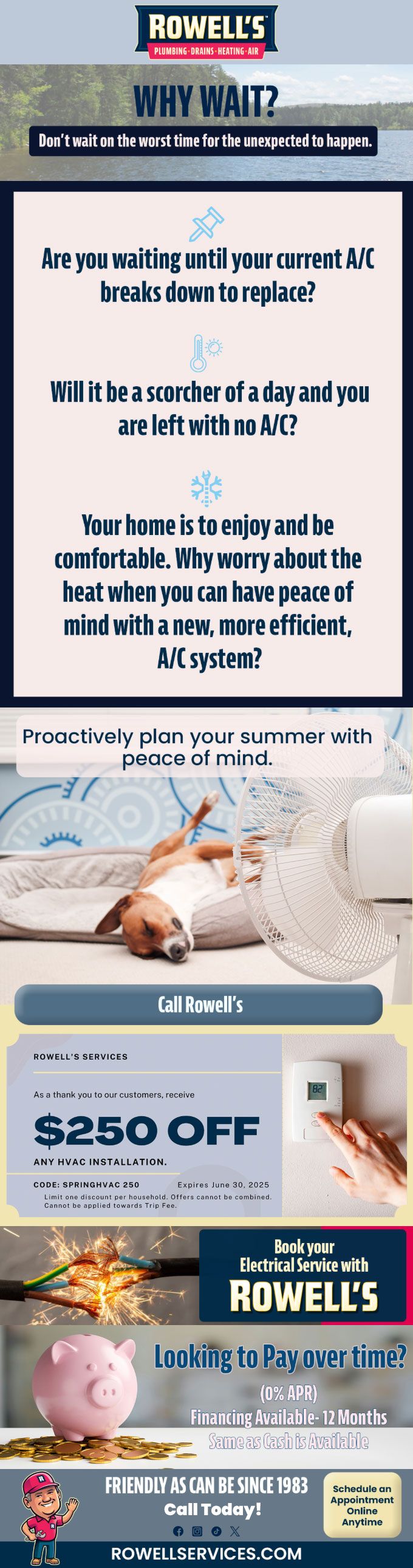 "Friendly As Can Be Since 1983!" When you need help with your plumbing, drains, heating, cooling or electrical in Andover, you can always rely on Rowell's Services! Call us now or book online!