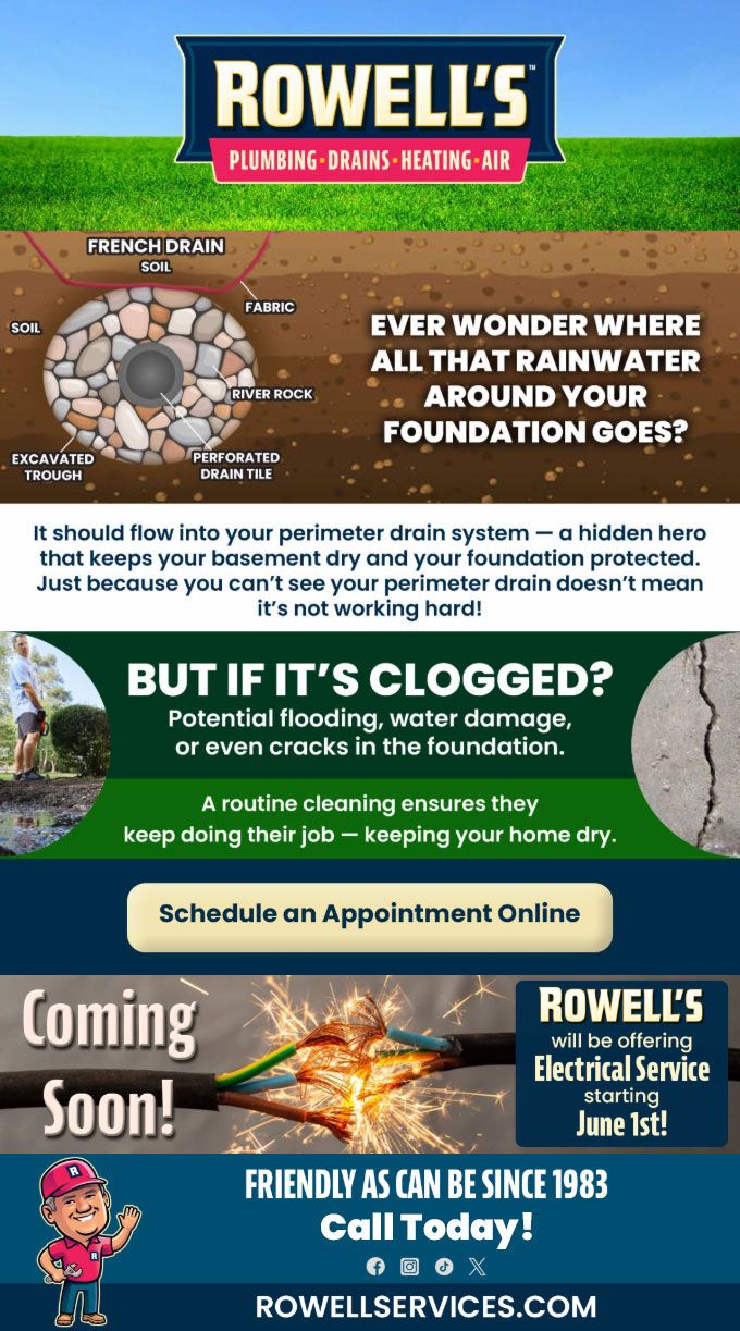 "Friendly As Can Be Since 1983!" When you need help with your plumbing, drains, heating, cooling or electrical in Andover, you can always rely on Rowell's Services! Call us now or book online!